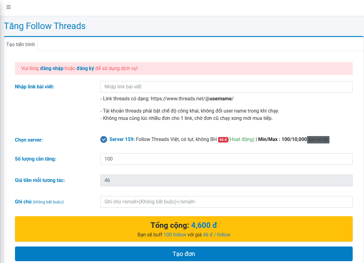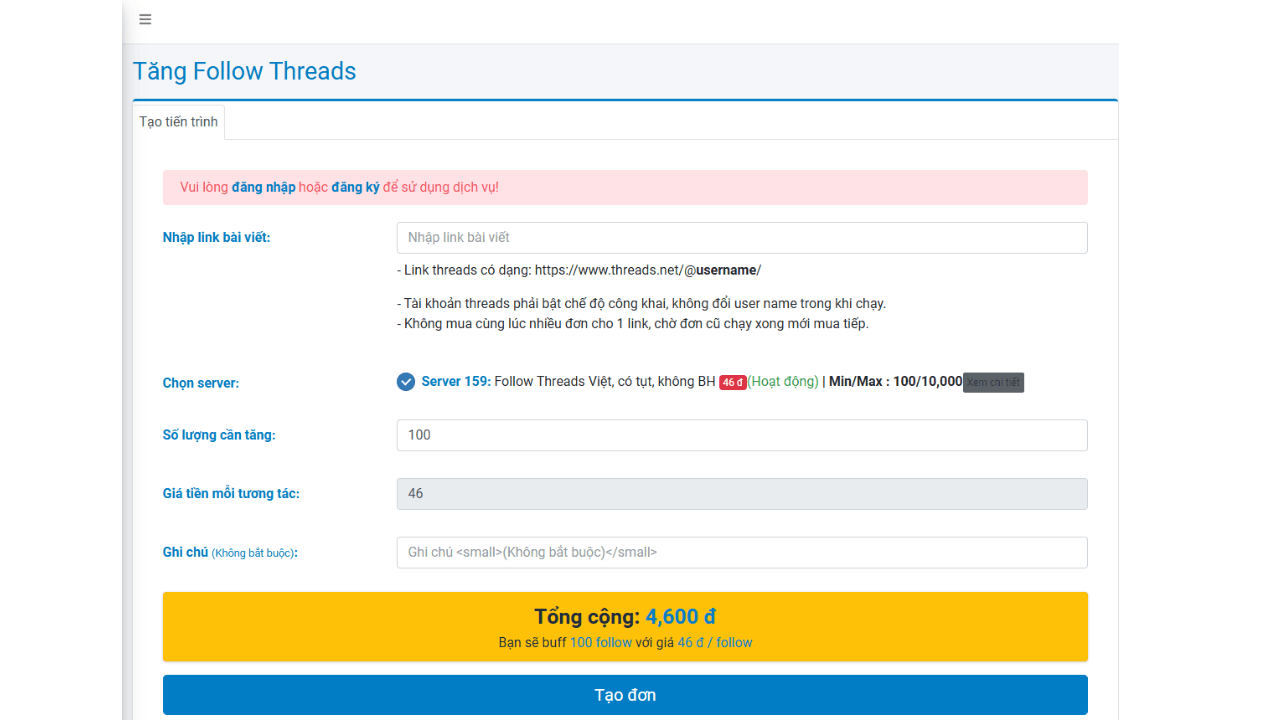- Tăng follow Threads thông qua kênh dịch vụ vừa nhanh, vừa hiệu quả