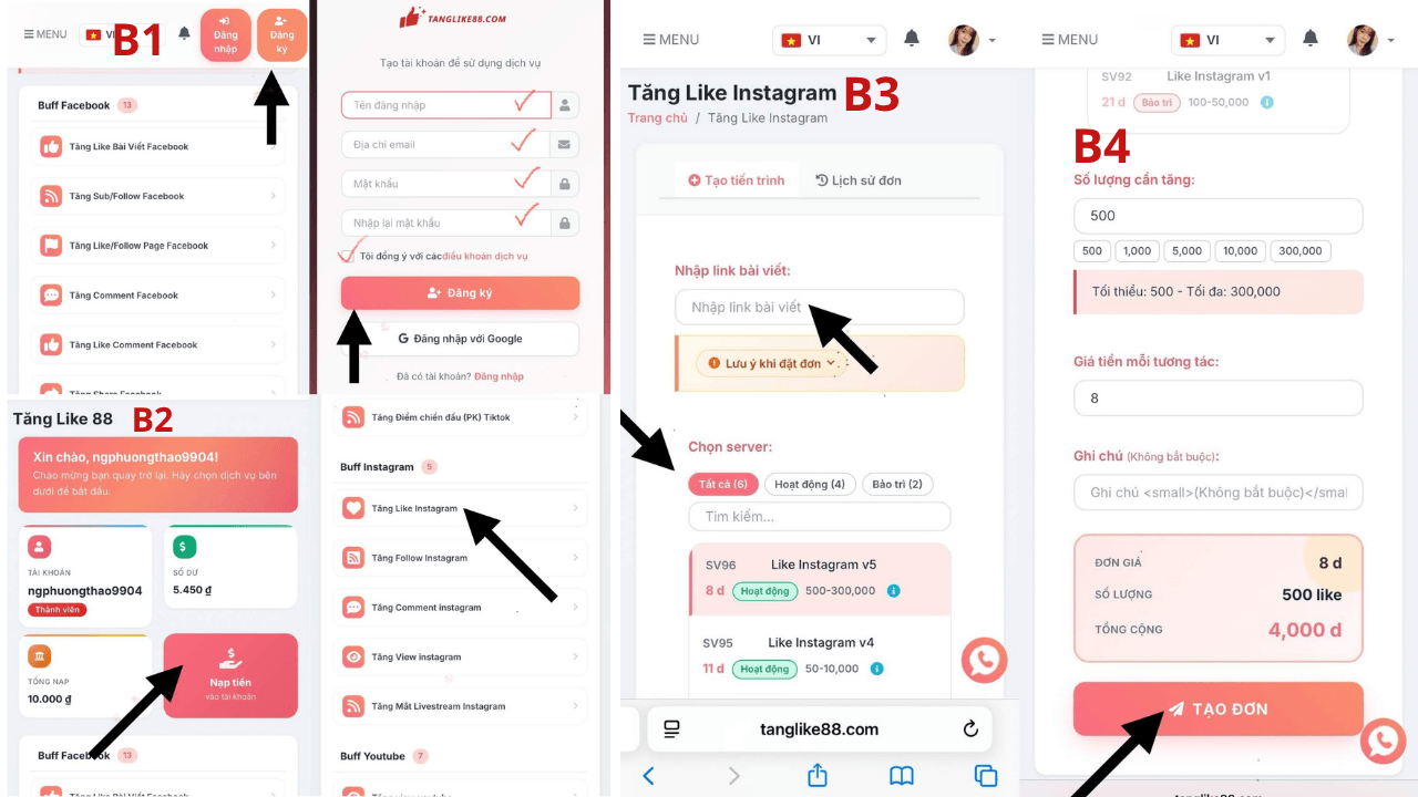 Việc tăng like Instagram trở nên dễ dàng hơn bao giờ hết nhờ hệ thống tự động tại tanglike88.com. Bạn không cần kỹ thuật phức tạp hay mất nhiều thời gian — chỉ cần vài thao tác đơn giản là đã có thể cải thiện đáng kể lượt tương tác cho bài viết của mình. Dưới đây là các bước hướng dẫn chi tiết: