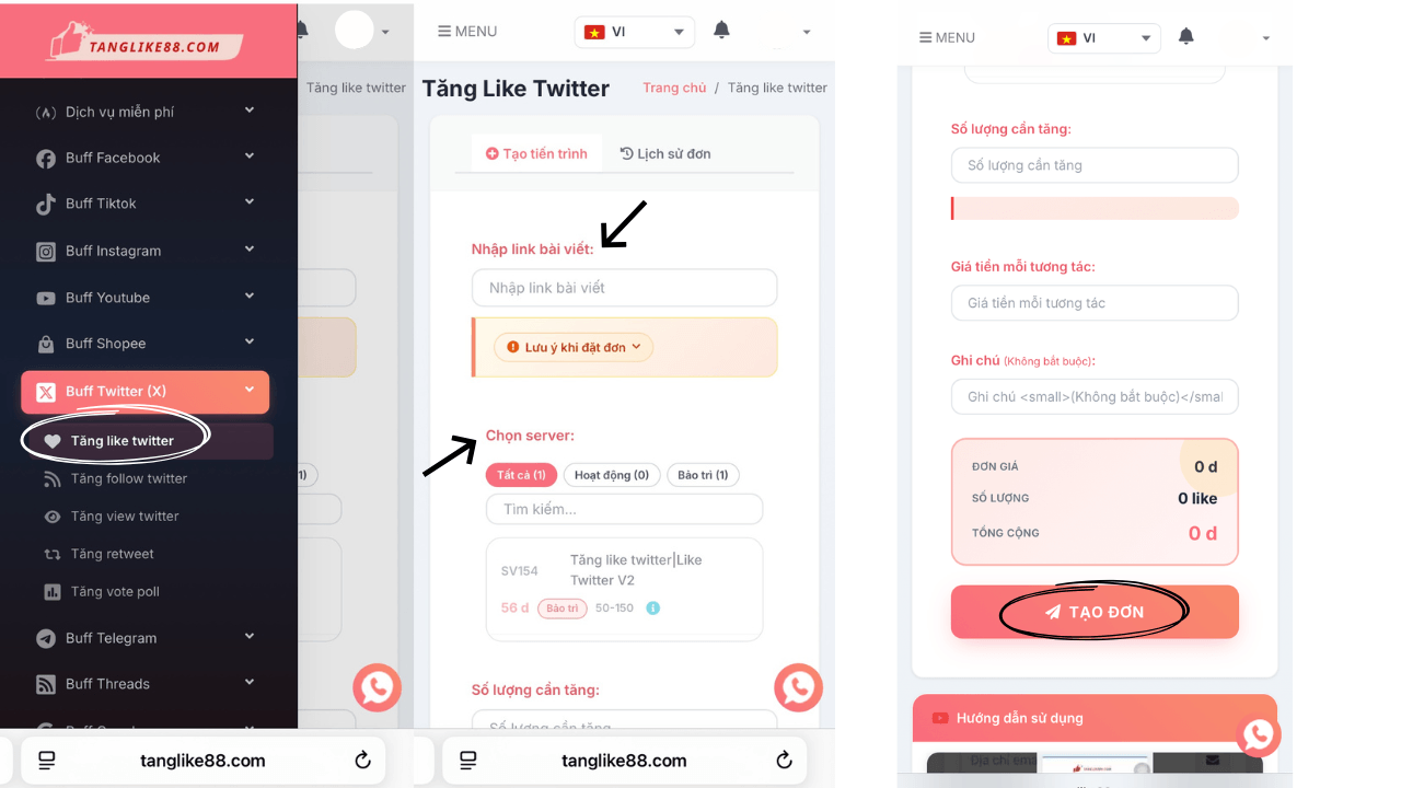 Việc tăng like Twitter trở nên đơn giản và nhanh chóng hơn bao giờ hết nhờ hệ thống tự động tại tanglike88.com. Bạn không cần kiến thức kỹ thuật hay quy trình phức tạp đã có thể cải thiện tương tác cho bài viết trên Twitter của mình. Dưới đây là hướng dẫn chi tiết: