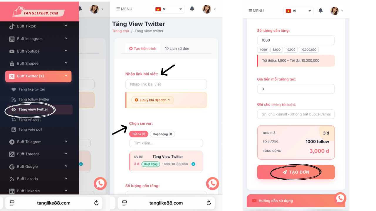 Việc mua View Twitter tại tanglike88.com cực kỳ đơn giản, nhanh chóng và thân thiện với cả người dùng mới. Nhờ hệ thống xử lý tự động, bạn có thể tăng lượt xem cho video Twitter một cách dễ dàng, không cần bất kỳ kỹ năng kỹ thuật phức tạp nào. Dưới đây là hướng dẫn chi tiết từng bước: